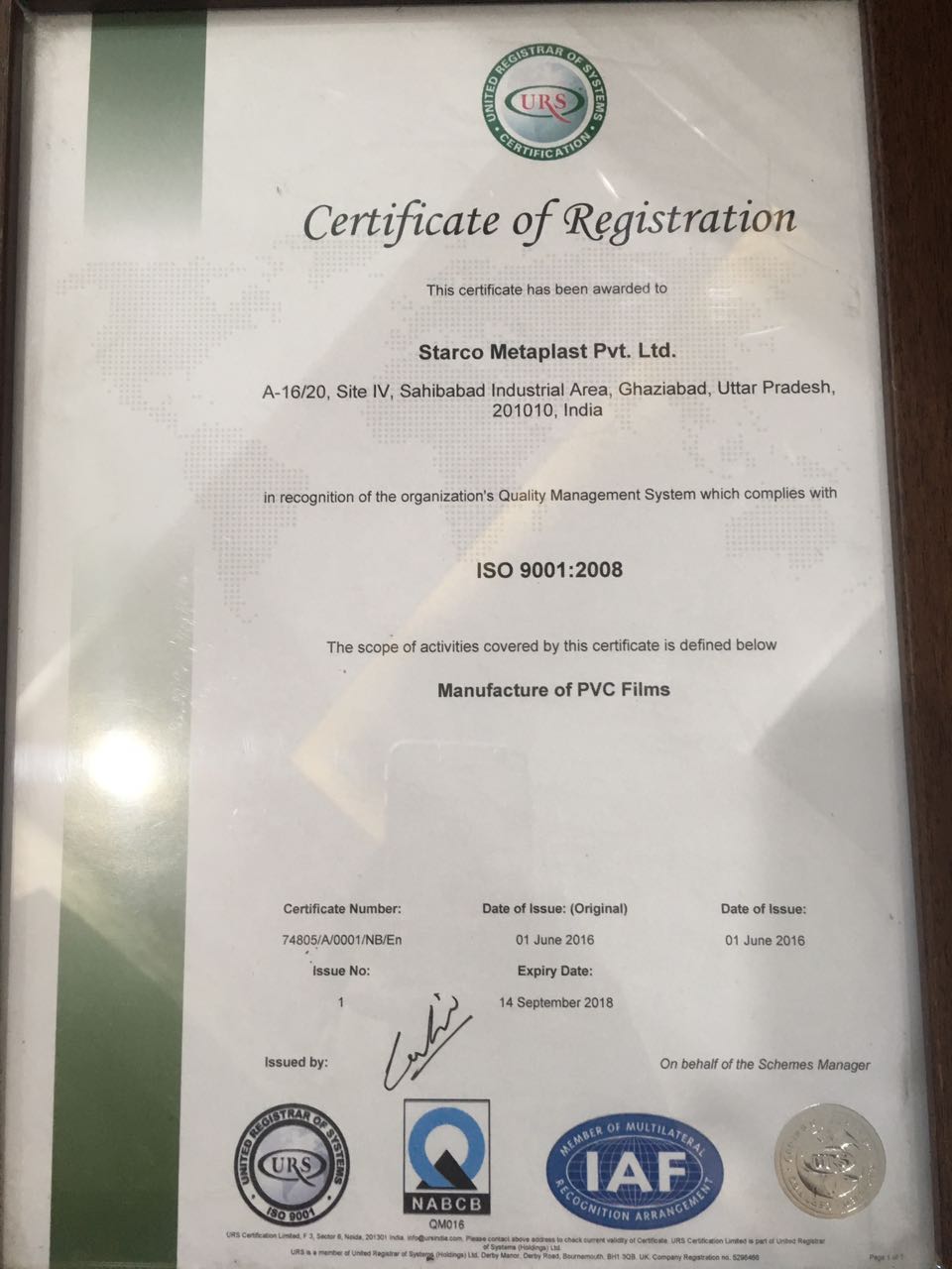STARCO METAPLAST PVT. LTD. IS AN ISO 9001:2008 CERTIFIED COMPANY